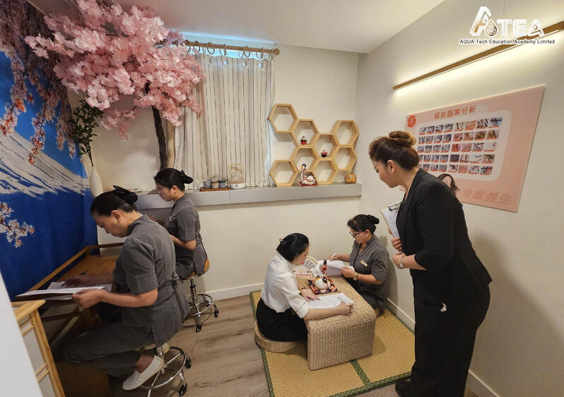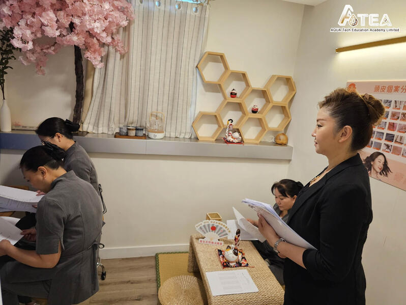 理論知識是基礎,熟練的操作技巧才是王道。因此,我們還會組織定期的實操考試。考生需要現場進行肌膚分析、敷面膜、手部護理等操作,並由本學院校長: Fanny LEE 進行全面考核。